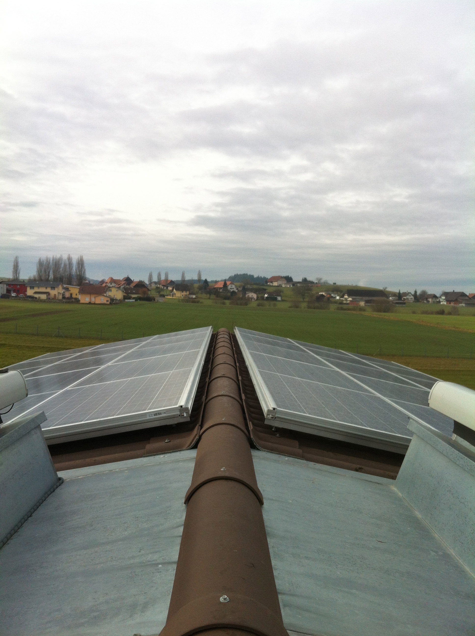 Mandaté pour une très belle installation de 2 x 10 kWc (86 panneaux) sur la toiture plate et les deux pans de l’habitation – Ferme avicole La Prairie, 1721 Cournillens. Mise à l’enquête terminée fin août, début des travaux mi-décembre 2013. Suite des travaux et mise en service pour début 2014.
