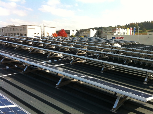 Mandaté pour un superbe projet d’autoconsommation chez Intershop à Corminboeuf, Fribourg. Correction de l’angle d’irradiance et de l’orientation avec une très belle structure aluminium accueillant 126 modules poly pour une puissance totale de 32.76 kWc. Ce magasin ayant – comme beaucoup voir tous – un fonctionnement diurne, la production photovoltaïque permet de compenser directement l’utilisation d’une énorme machine d’entretien des skis en plus des charges générales du bâtiment (éclairage, …)