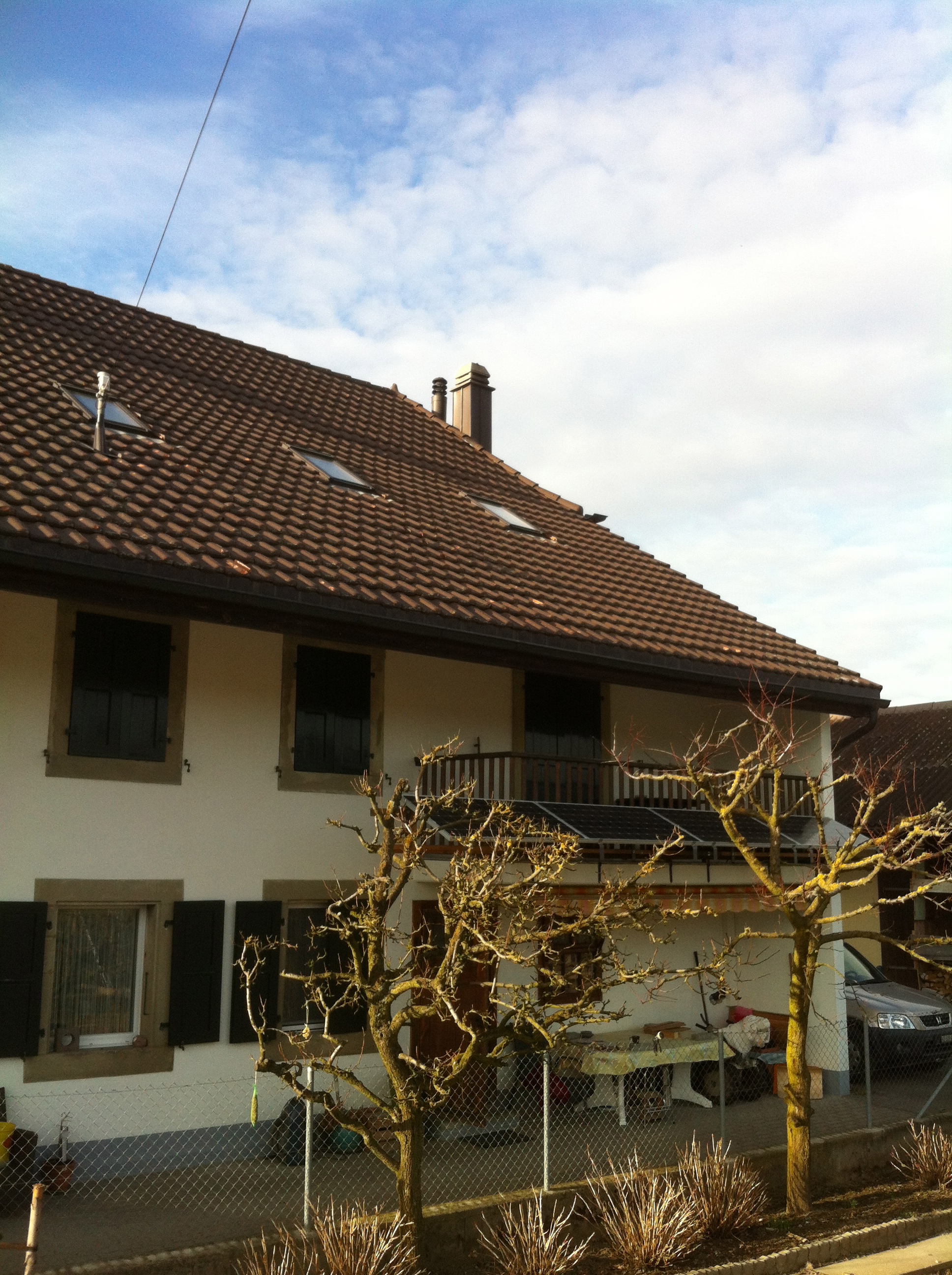 Amélioration énergétique de la maison et économies directes sur la facture d’électricité par le biais de la pose sur toiture de 4 panneaux photovoltaïques (extension prévue) plus deux panneaux ECS sur la même structure. Production provisoire de 720 kWh/an.