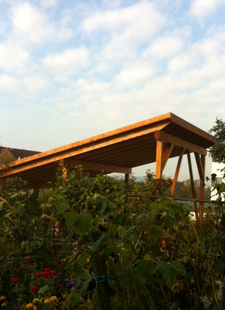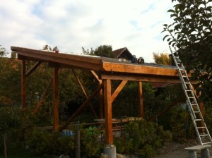 Superbe couvert-pergola vue de face, installation terminée.