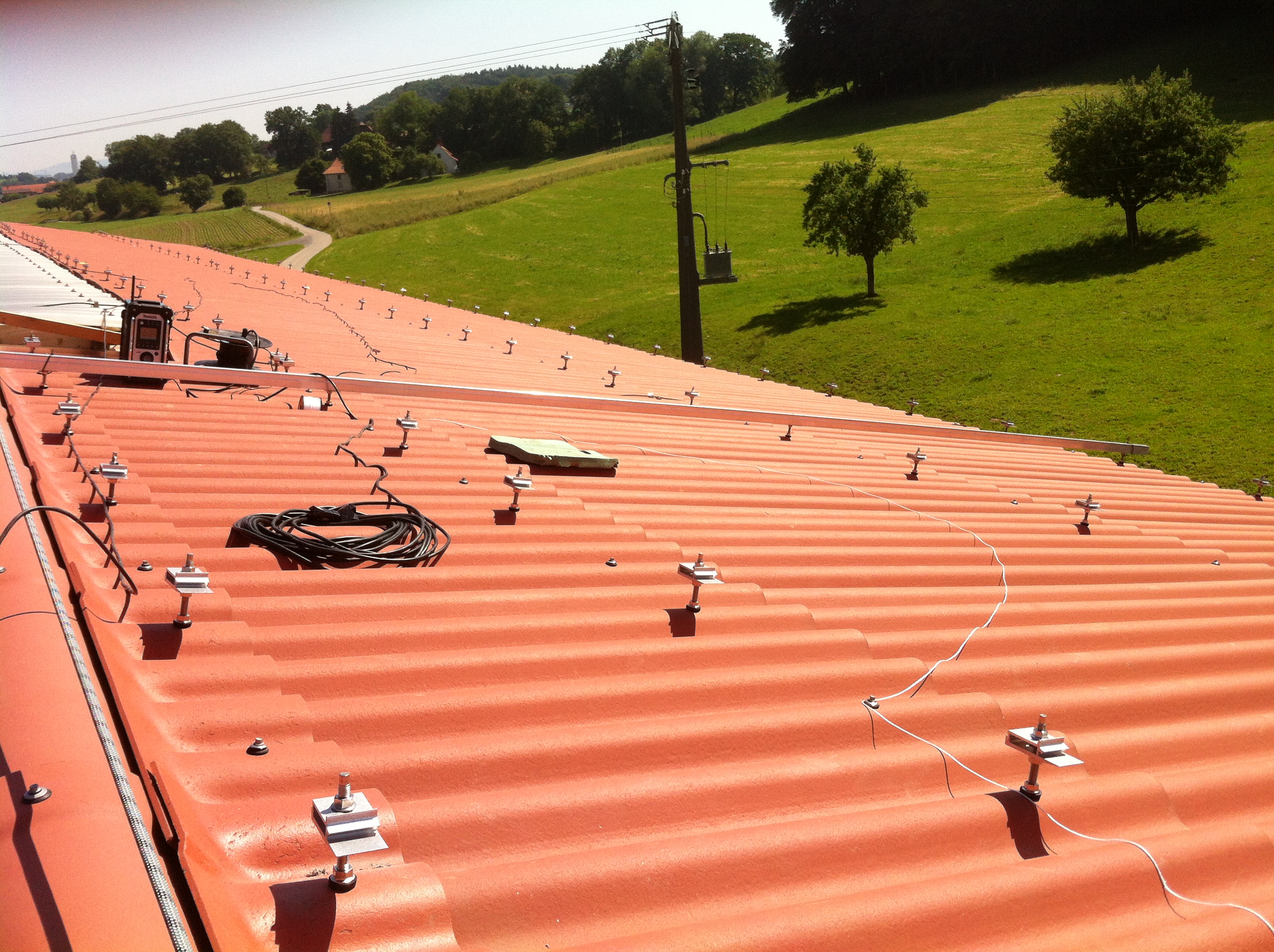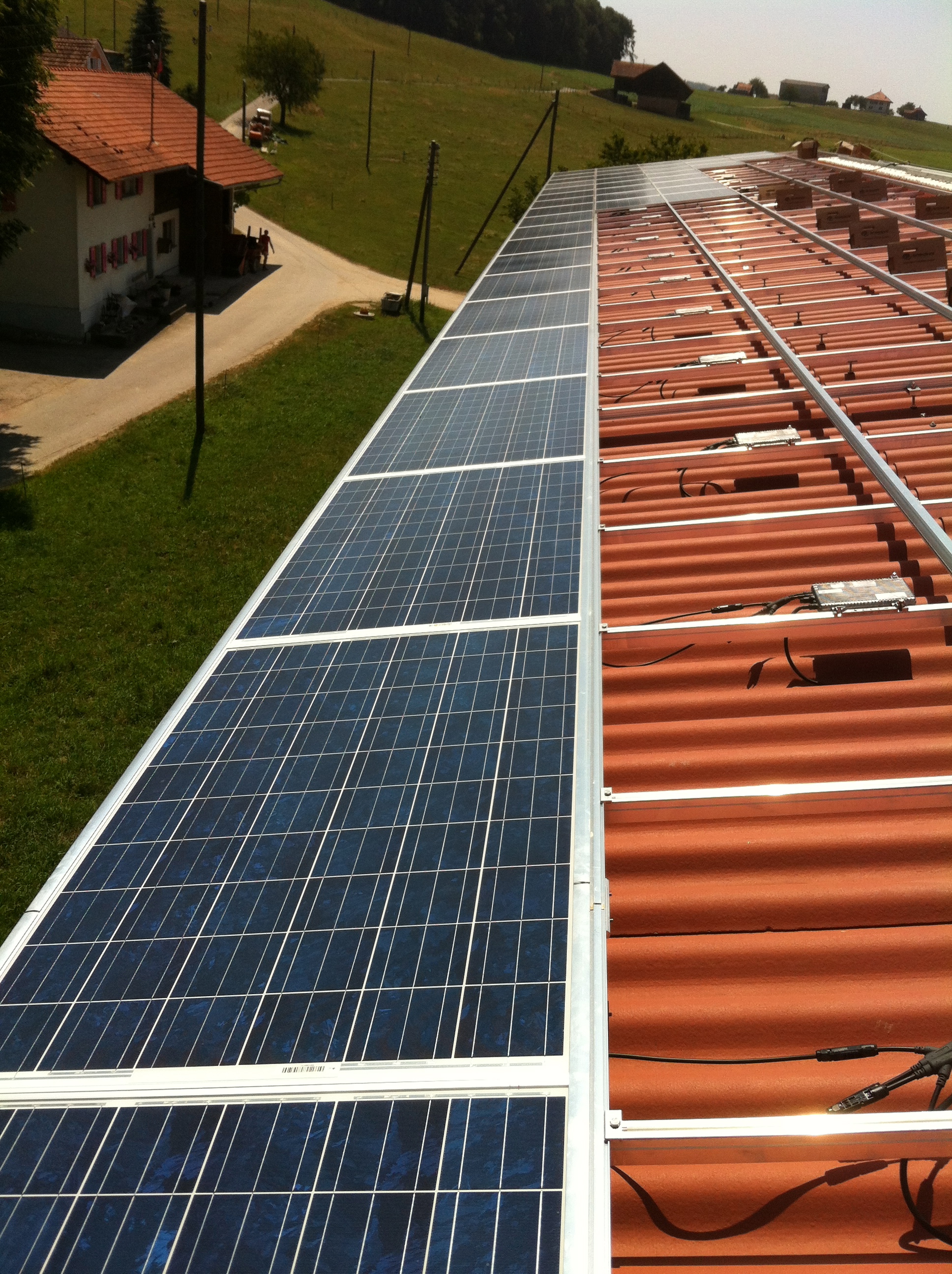 Mandaté pour une installation de 86.4 kWc (369 panneaux) sur la toiture d’une stabulation, 1721 Cournillens. Mise à l’enquête terminée, dossier ESTI en phase d’approbation. Travaux terminés, mise en service mi-septembre.
